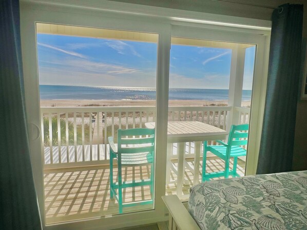 En el interior, encontrará el ÁREA DE VIDA con cómodos asientos, TV de pantalla plana de 42 pulgadas y una mesa de centro de madera de deriva exclusiva de madera flotante; el COMEDOR con mesa personalizada hecha de vidrio y madera de barco antiguo; la COCINA totalmente equipada con encimeras de granito, BARRA DE DESAYUNO, fregadero bajo encimera, electrodomésticos de acero inoxidable, así como una cafetera KUERIG y normal; BAÑO COMPLETO Y HABITACIÓN DE HUÉSPEDES con cama queen y TV de pantalla plana.