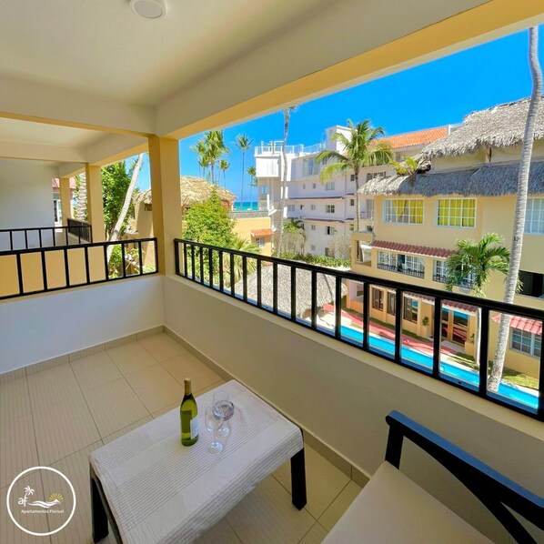 Complejo de departamentos con balcón, cerca de Playa Los Corales