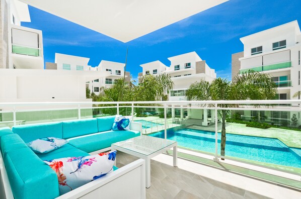 Notre unité A202 es un grand appartement d’environ 1450 pieds carrés, situé au 2ème étage, offrant 2 chambres à coucher et 2 ½ salles de bain, avec air climatisé et ventilateurs de plafond dans le salon et dans les deux chambres à coucher. Es un plan de corte exterior y está decorado con goce, con un móvil y accesorios de calidad. Il peut accueillir 6 personnes (avec un lit king in dans la chambre principale et 2 lits dobles dans la deuxième chambre) Dispone de 3 balcons, un petit dans chacune des chambres et un grand donnant sur la magnifique piscine, qui est entièrement meublé avec une table de salle à manger pouvant accueillir 6 personnes, un grand canapé avec une table basse, ainsi qu'une chaise longue, pour profiter pleinement de l'extérieur.