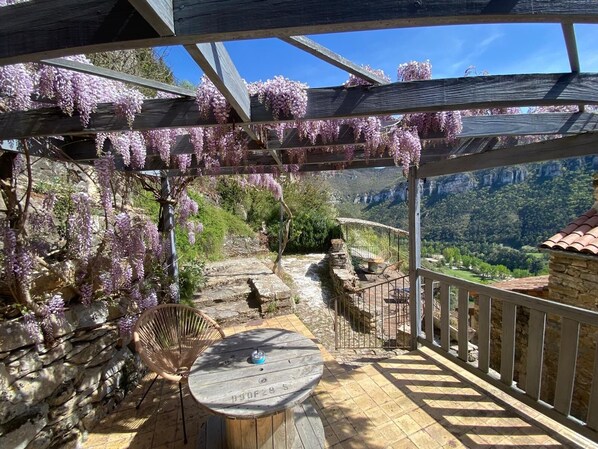Gite Glycines, terrace under the Glycine, other terrace for the sunset