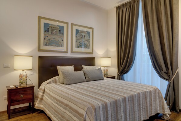 Recientemente renovado por un famoso diseñador de interiores de Roma se compone de un amplio dormitorio y dos baños modernissim. La propiedad incluye una sala de estar con un cómodo sofá cama, y una zona de cocina totalmente equipada. Cada habitación está equipada con una televisión inteligente de 43 "y aire acondicionado. El apartamento tiene calefacción independiente.