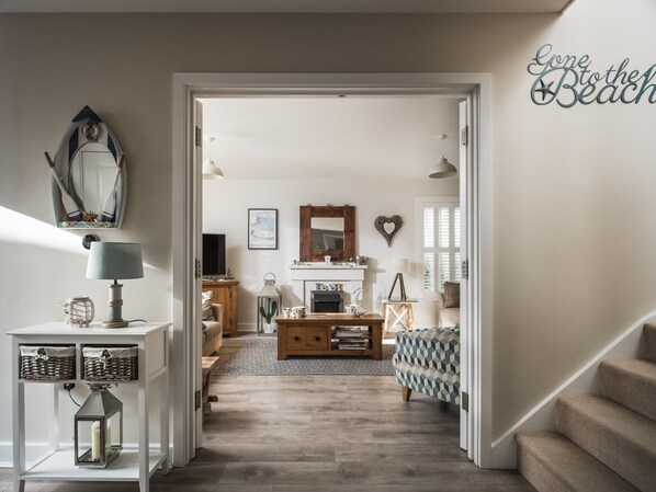 La planta baja consta de una cocina / comedor de planta abierta con todo lo que necesita para preparar sus propias comidas, una mesa de comedor y puertas dobles al jardín. Al otro lado del pasillo y a través de las puertas dobles, encontrará la sala de estar luminosa y soleada equipada con un gran televisor de pantalla plana para mantener a los niños y adultos entretenidos si el sol no brilla.