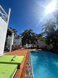 This property is beautiful and quiet. Everything was well kept and organized. Multiple lawn chairs a cabana on a private beach. A nice cool pool to relax by on hot days.. The property managers (Norman and Yvonne) were outstanding hosts and beyond helpful. They went out of their way to make sure we were comfortable and fed! They anticipated all of our needs (brought us multiple home cooked meals, ice cold beers and kept our water jugs full). The rooms are clean and well kept. Couldn’t recommend this place more. One thing to note — the wifi is not strong, so be sure to plan ahead if you need to work while here. This actually ended up being a pro in my case. It was great to be mostly disconnected for the week