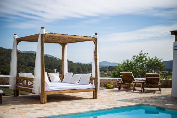 En el exterior, existe un gran jardín privado con piscina, jacuzzi exterior, barbacoa, tumbonas, ping pong, billar y futbolín y cama balinesa.