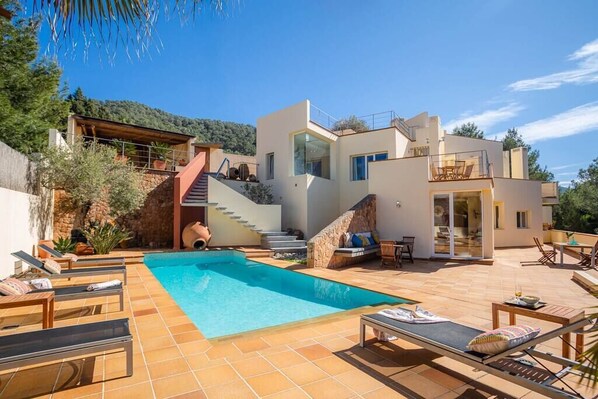 SA GANZAIA Moderna casa de campo con piscina y vistas al mar, a 3 km de la playa