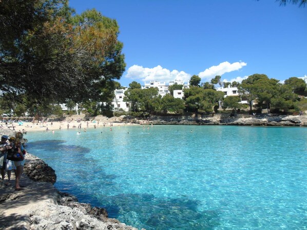 Das Apartment befindet sich in Hanglage mit Blick auf die Bucht Cala Grande, direkt im Ortskern von Cala d‘Or. Der Blick in die Bucht und auf den Strand ist atemberaubend schön. Es gibt einen Fußweg in der Anlage mit direktem Zugang zum Strand. Die Betreuung von Florence war super freundlich und zuvorkommend. Wir kommen jederzeit gerne wieder!