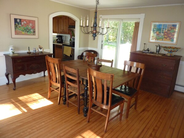 This property exceeded our expectations. It was a delightful older New England rambling house with wonderful art, furniture, and a fully set up kitchen. It was not far from route 1, but far enough back to not be a problem. Cobb Rd dead-ended at a nature reserve of 170 acres, all wooded. The flower and herb gardens around the house were lovely, and we made pies from the rhubarb. We were delighted to find a brand new supercharger in Searsport to charge our EV only 5 miles away. The beds were comfortable and the linens plentiful, and the laundry machines were up to date. Communication with the owner was excellent. We went kayaking, puffin watching, ate lobster at Young's.