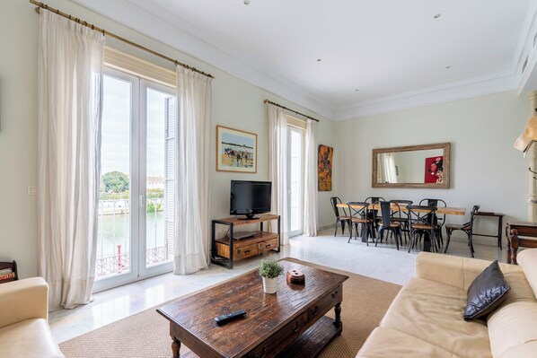 Betis Triana se encuentra en la segunda planta de un edificio recién reformado, con ascensor. El apartamento ofrece acabados de alta calidad y vistas únicas: el río Guadalquivir aparece como una extensión del salón.