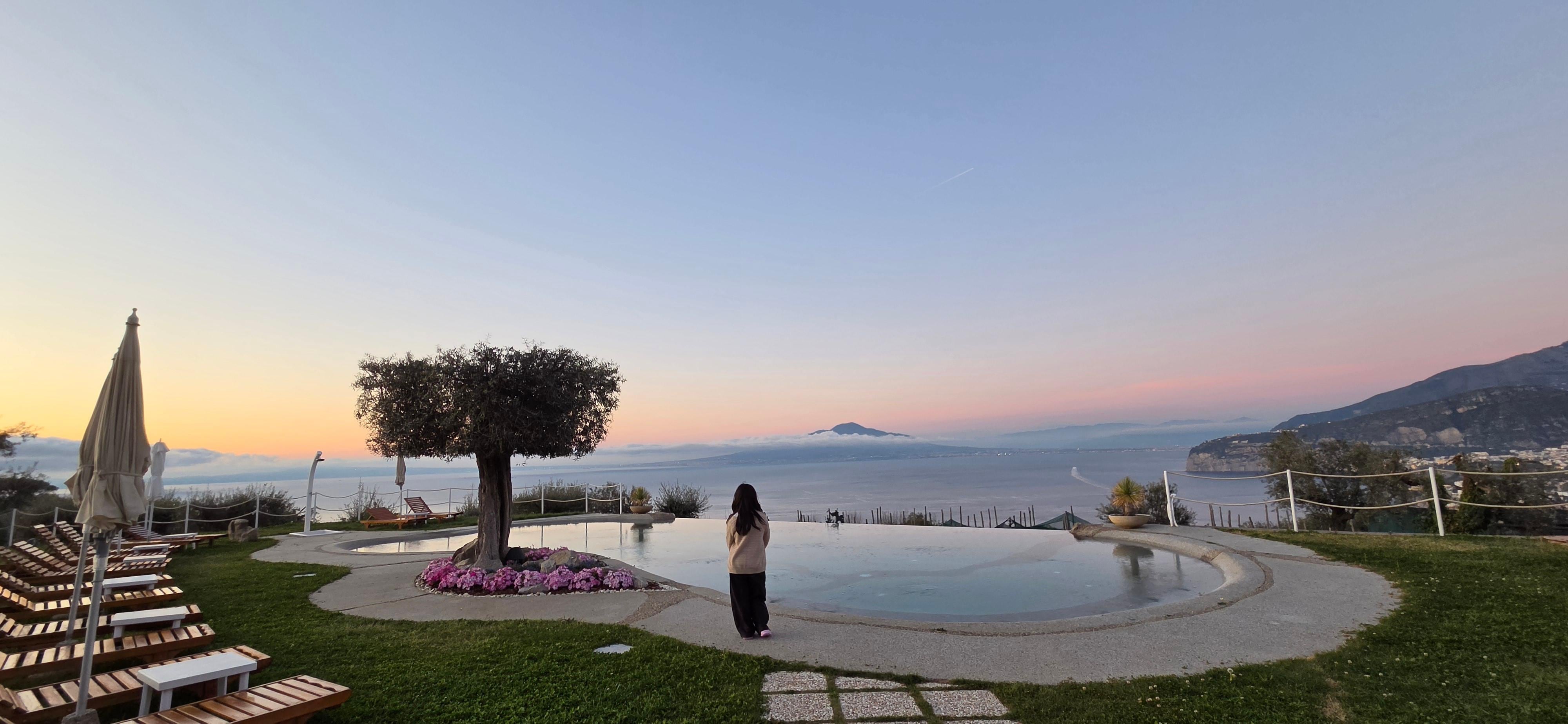 Beautiful property with amazing views of the Bay of Naples and Sorrento. We really enjoyed our stay here. The hotel is beautiful and very clean. The staff was wonderful and took great care of us. They were helpful arranging the shuttle pickup and drop off each day for their driver, Silvio. The included breakfasts each morning were wonderful and generous. We were never hungry there. We really enjoyed being a short drive up the hill away from all the street noise of busy Sorrento and the thousands of scooters. With limited parking and street access , it was a relief to park the car and use their shuttle each day.
