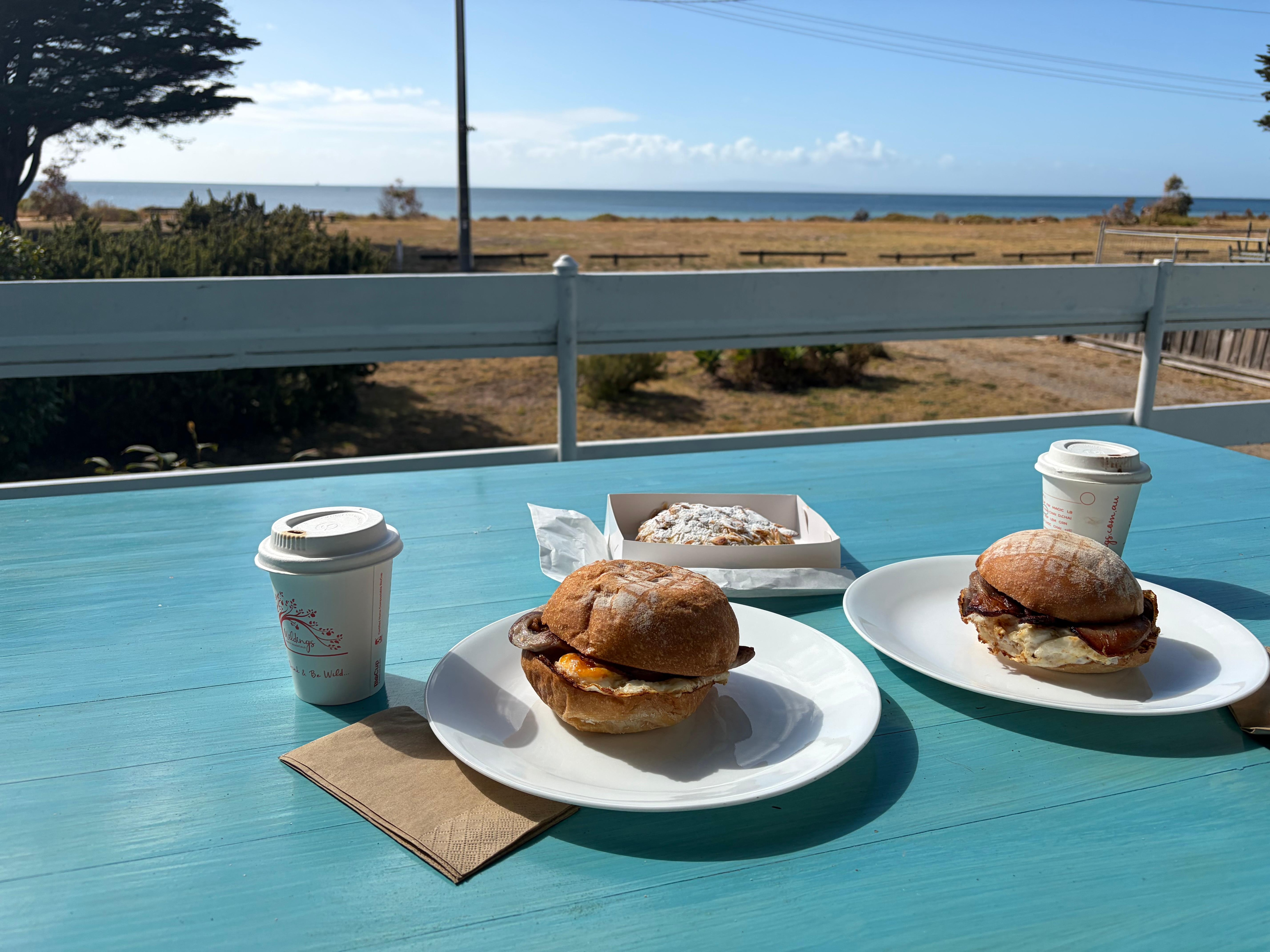 Tomar el desayuno en la terraza con magníficas vistas a la bahía de Mount Martha, Sorrento y el centeno.