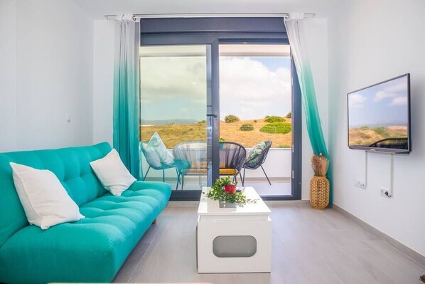 Elegante apartamento con garaje en Tarifa de nueva construcción a estrenar, a 8 minutos andando de la playa y del centro del pueblo (puerta de Jerez) en zona tranquila con amplia terraza al resguardo del levante donde podrás disfrutar de maravillosas puestas de sol, con vistas laterales a la costa de Tarifa.