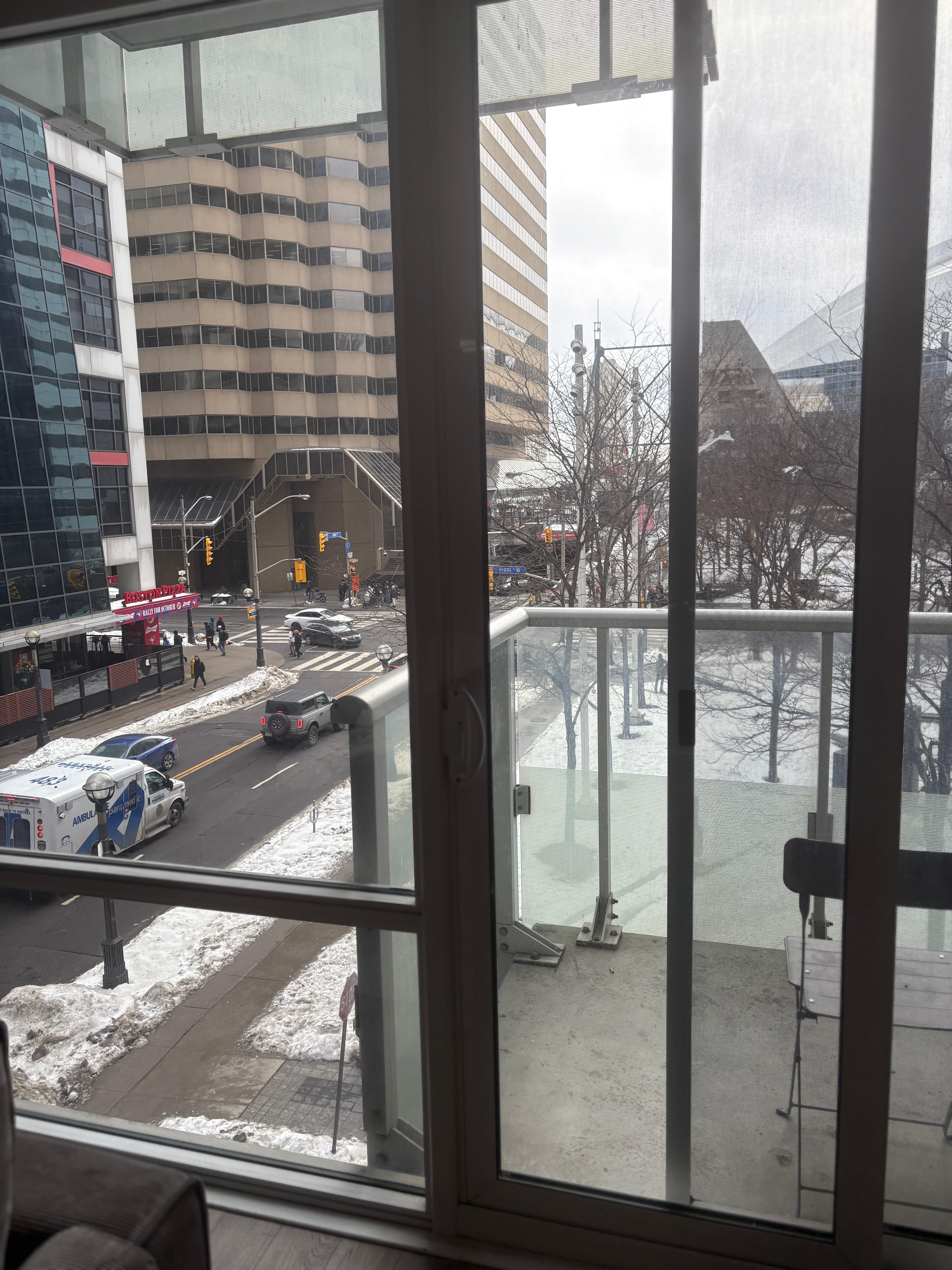 I could not have asked for a better location. I was so close to the MTTC that I didnt have to bring my coat to the convention. The view from the 23rd floor was fantastic since we were looking over the CN tower. I was surprised that the second bed was right at the front door which I didn't notice in the photos. The hot tub was closed due to construction and since it was winter the pool was not in service but the gym was available. There should have been more light in the bathroom for girls to put on makeup. It would have been nice if there was another cozy chair in the living room corner but the place was nicely decorated, clean, and close to everything that mattered to us. It was a great stay.