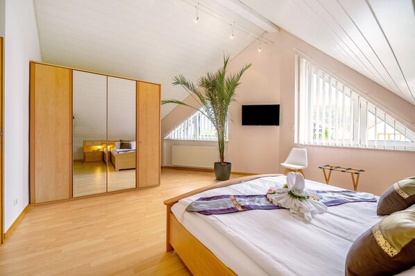 Las dos camas individuales de las habitaciones se pueden juntar como cama doble.