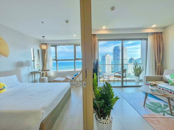 Our family’s two-week stay at this lovely apartment was everything we needed for a relaxing, sun-filled getaway.The host was wonderfully friendly and responsive, making us feel welcomed from start to finish. A generous complimentary room service was such a nice touch!The apartment itself was spotless and well-equipped with all the essentials. The real star, however, was the view! Waking up to ocean vistas from the master bedroom and spending evenings in the living room watching ships glide by and waves crash was pure magic. The chair by the window became our favorite spot to unwind.A few helpful notes for future guests: The three bedrooms were spacious, with two having AC. For Western preferences, the beds are quite firm (typical Vietnamese style) a plush mattress topper would be a dream for sore muscles! We also found hiring a bike incredibly convenient for getting around, and using Grab for food delivery was seamless. The large supermarket in the nearby Lotteria mall is a short walk away and perfect for supplies.We used the building's gym once; the sign-in/shoes policy felt a bit strict, so we opted for the nearby City Fitness instead. We didn’t end up using the pool, but having the option was nice.All in all, we had a truly wonderful and relaxing stay. Thank you to our fantastic host for a memorable family holiday! We’d happily return.