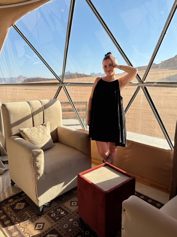 Room-a Luxurious Experience Under the st se encuentra en Wadi Rum. Templo Nabateo y Lawrence's Spring son lugares emblemáticos locales, y la belleza natural del área puede apreciarse en Área protegida Wadi Rum y Cañón Burrah. Visita nuestra guía de Wadi Rum (desierto)