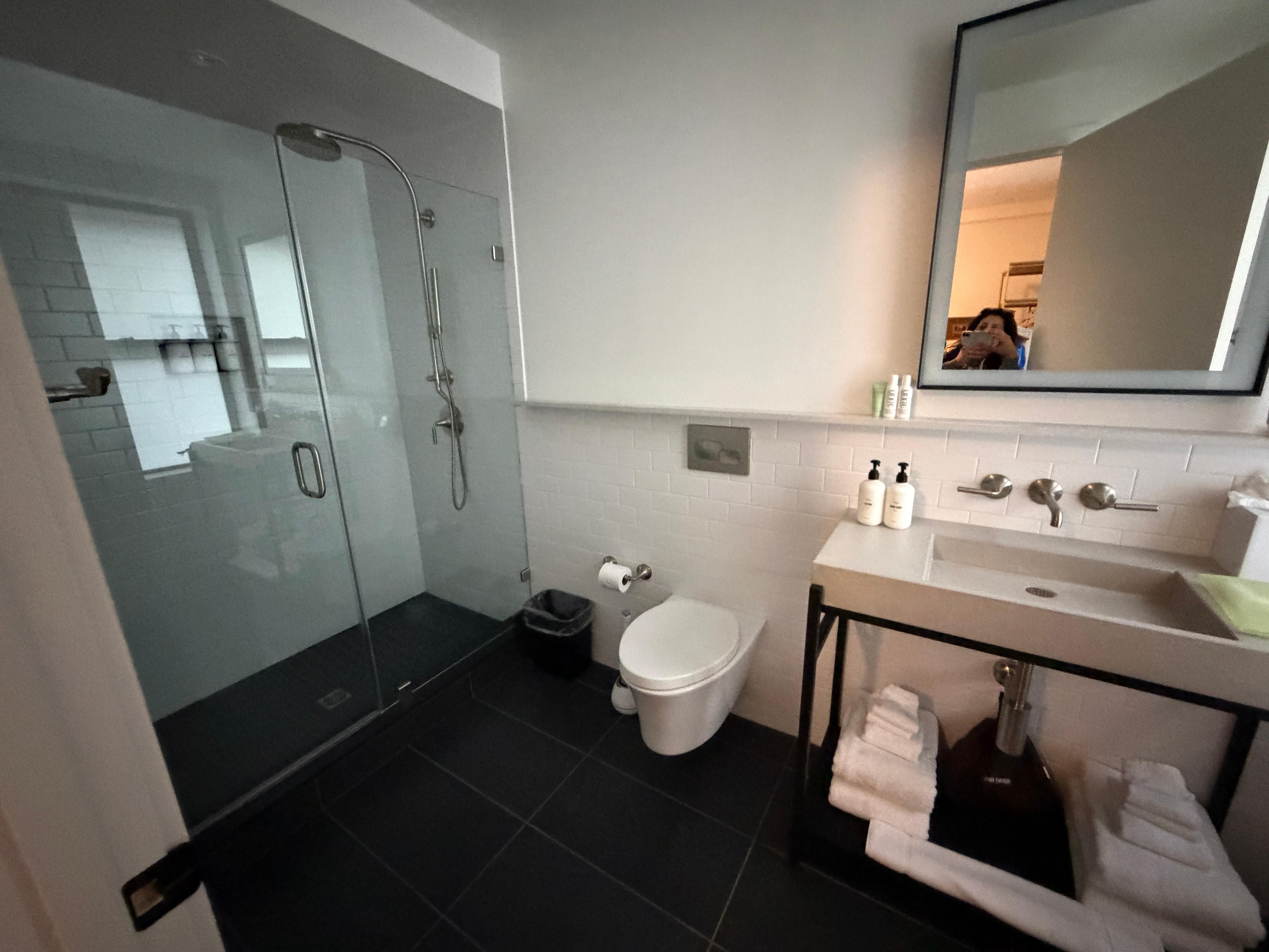 Excellent room, very spacious and comfortable. Big, big bathroom with a nice shower, all very clean. Excellent location and great value.