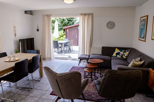 El salón es luminoso y espacioso. El baño tiene bañera y ducha separada. Hay 3 dormitorios con un total de 5 camas. La cocina está totalmente equipada. Un jardín completamente cerrado y un parque infantil en el parque es un lugar ideal para los niños.