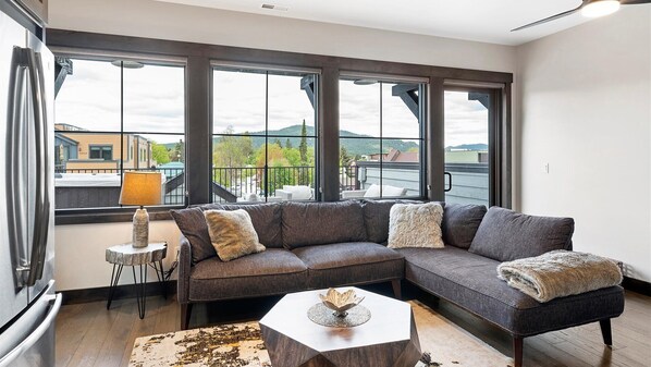Último piso de nueva construcción en el corazón del centro de Whitefish, Montana. Las impresionantes vistas del vibrante centro de la ciudad, Central Avenue y Big Mountain se pueden disfrutar desde las paredes de las ventanas en la sala de estar o desde el amplio balcón con vistas a la maravillosa ciudad. Esta es una ubicación fantástica, a solo unos pasos de: