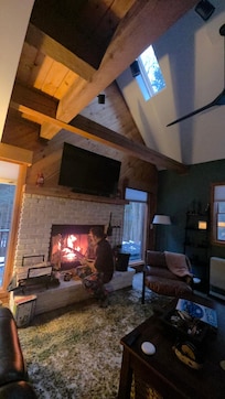 Excellent cozy stay. My family and I really enjoyed the peace and serenity in the mountains. It was decorated impeccably, like out of a magazine (and I'm picky), and the finishings were top-notch and so clean. The private outdoor hot tub was amazing-steamy, secluded and relaxing. The wood burning fireplace was the perfect touch. Wood and kindling was also provided. The bathrooms were upscale-huge bathtub, lots of shower pressure and the tiled floor was heated! Some extras we also enjoyed were the games, fuzzy blankets, oversized recliner couches, scented candle, smart tv's and lots of room to prep and cook in the top notch kitchen. We also enjoyed a 1st floor primary bedroom while our children were upstairs, plenty of towels, a basket of smores supplies and immediate contact with hosts-who were polite, responsive and accommodating. We would definitely recommend! 5 Stars!