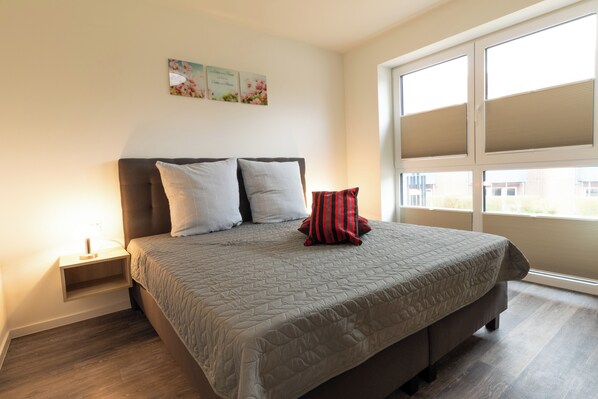 Los baños están equipados con regadera. Este departamento en Wurster Nordseeküste ofrece acceso a wifi gratis.