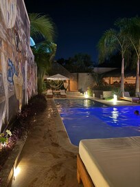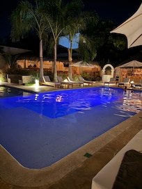 Sí, la propiedad cuenta con alberca al aire libre y chapoteadero. Se puede entrar a la alberca de 08:00 a 22:00.