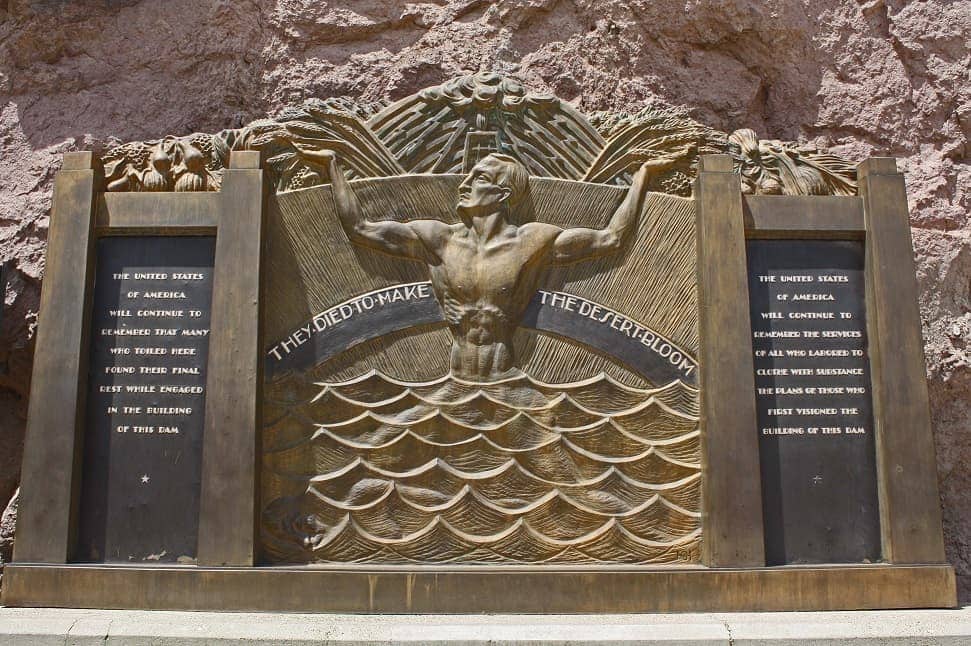 El primero, el escultor de origen noruego Oskar J. W. Hansen, realizó un memorial dedicado a los 112 trabajadores que perdieron la vida durante la construcción del complejo, aquellos que “murieron para que el desierto floreciera”, como reza la placa. El escultor también diseñó las “Alas de la República”, esculturas que se pueden visitar en el mismo sitio, cuyo piso muestra un mapa de las estrellas.