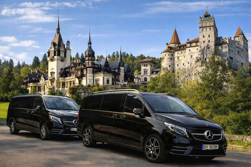 Su recorrido comenzará cuando sea llevado por un guía profesional de su hotel en Brasov. Desde aquí viajará con una lujosa camioneta Mercedes de clase alta, que será su medio de transporte para los 3 de sus lugares de interés incluidos en el recorrido.