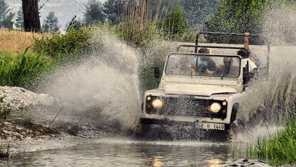 Navega por la aldea Çamlık durante nuestro safari en Jeep de Bodrum, conquistando ríos, barro y pozos de agua. En medio de senderos boscosos moteados, tu corazón se acelerará y encontrará consuelo en las paradas panorámicas. Captura momentos perfectos con impresionantes fondos.
