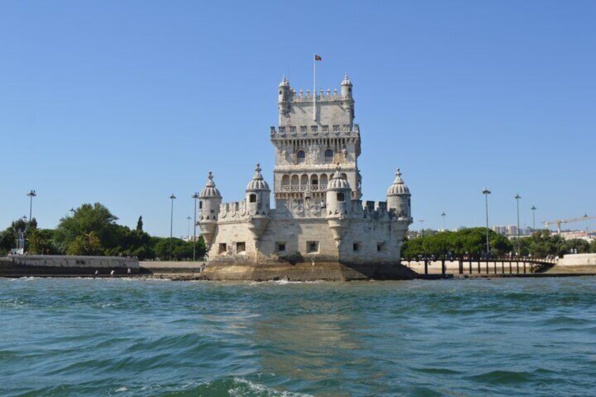 Recorrido en barco al atardecer por Lisboa: lancha motora privada de lujo
