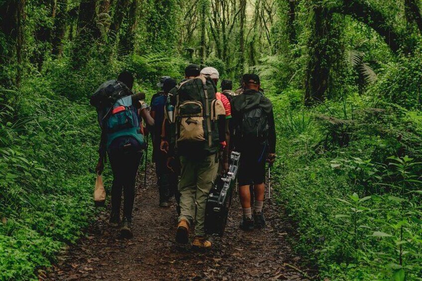 Daremos una sesión informativa sobre los detalles de la caminata, nuestros guías revisarán su equipo de trekking antes de partir. Luego la aventura comienza con un viaje de 1 hora hasta la Puerta del Parque Nacional Kilimanjaro, donde nos registramos e iniciamos la subida. A los pies del Kilimanjaro caminaremos por la selva tropical, donde se pueden observar plantas y árboles tropicales, avifauna y monos colobos. Seguiremos el camino y llegaremos al campamento Mandara en 4 horas. Puedes hacer un viaje paralelo al cráter Maundi, que es un gran punto de vista sobre el norte de Tanzania y Kenia. Elevación: 1860m/6100ft a 2700m/8875ft Distancia: 8km/5mi Tiempo de caminata: 3-4 horas Hábitat: Montane Forest Comidas: Almuerzo y Cena
