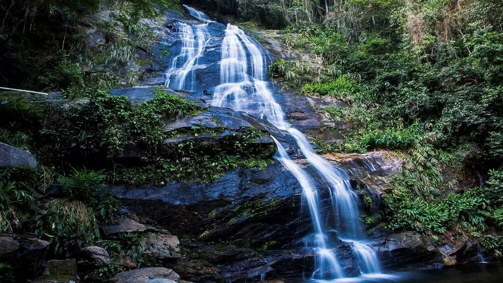 Partimos a las 8:00 AM de hoteles en la Zona Sur de Río (Copacabana, Ipanema, Leblon) en un Jeep descadeado. A medida que nos alejamos de la ciudad, tu guía comparte información sobre el Parque Nacional Tijuca, uno de los bosques urbanos más grandes del mundo. Una vez dentro del parque, comienza el recorrido en Jeep por el Bosque de Tijuca. El paseo nos lleva entre árboles gigantes, flores exóticas, y los sonidos de aves nativas. La primera parada es la Cascada de Taunay, donde el agua cade sobre un paisaje verde y rocoso. Un punto de observación clave es Mirante Excelsior: allí nos detenemos para admirar las vistas de la ciudad y las montañas.