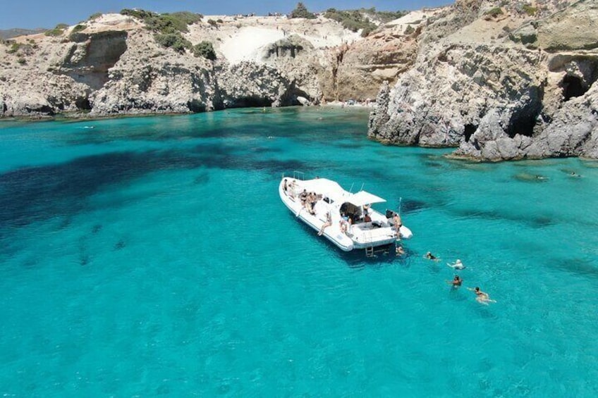 Adamas: crucero de medio día en lancha rápida Kleftiko con esnórquel