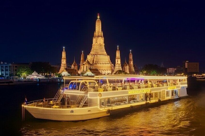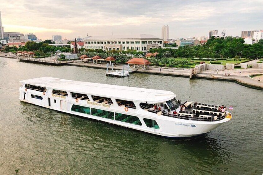 Cena buffet de crucero al atardecer desde Bangkok