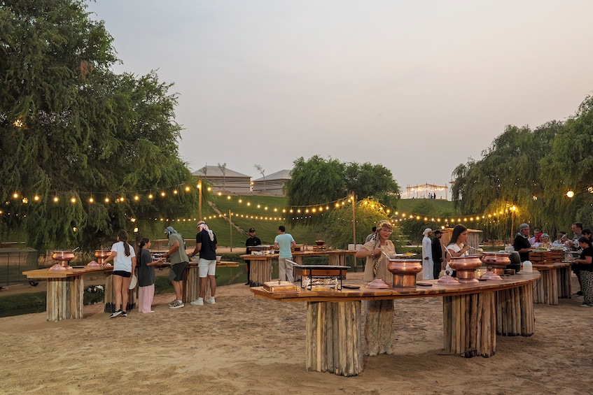 Cena buffet árabe en el campamento del desierto de Al Khayma con opciones vegetarianas y no vegetarianas