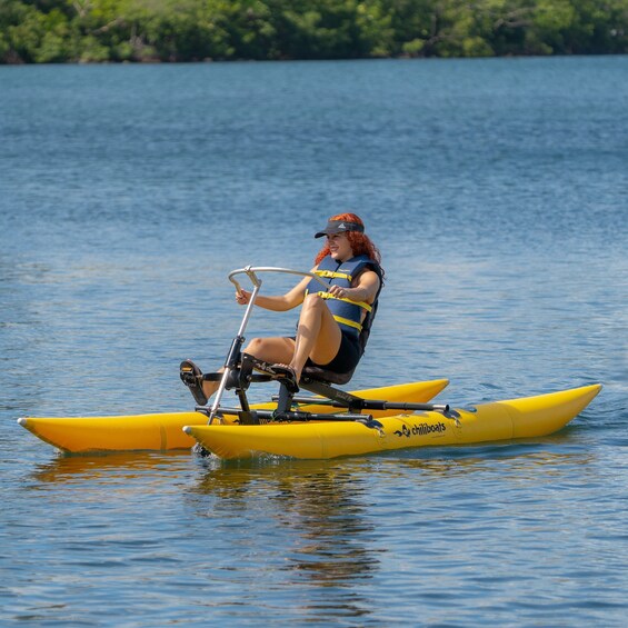 Al embarcarse en su recorrido en bicicleta acuática, se sumergirá por completo en el impresionante entorno natural de la laguna del Condado. Las aguas tranquilas y sin olas de la laguna la convierten en el lugar ideal para observar de cerca la vida marina. Esté atento a los vibrantes peces y otras criaturas marinas mientras pedaleas por las aguas cristalinas.