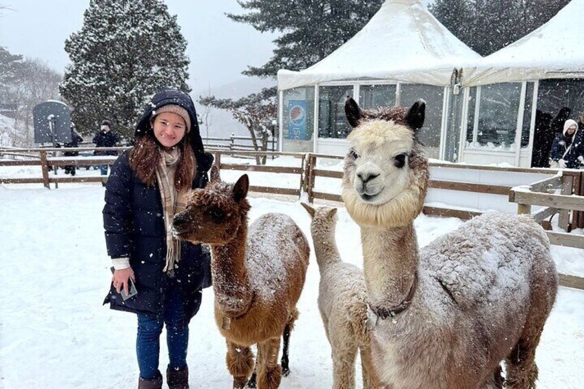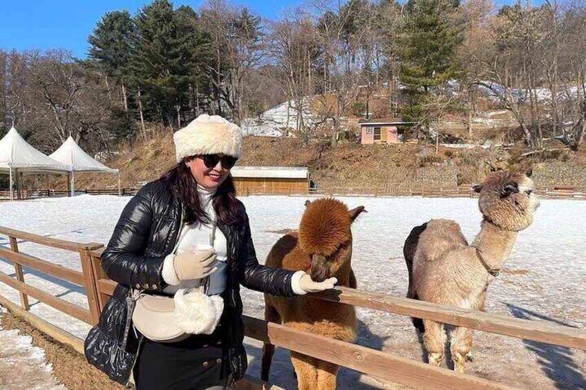 Nuestro itinerario no solo incluye destinos de naturaleza serena como Nami Island y Eobi Ice Vally, sino que también ofrece emoción y belleza escénica a través de visitas a Alpaca World, que puede disfrutar interactuando con las alpacas alimentándolas directamente.