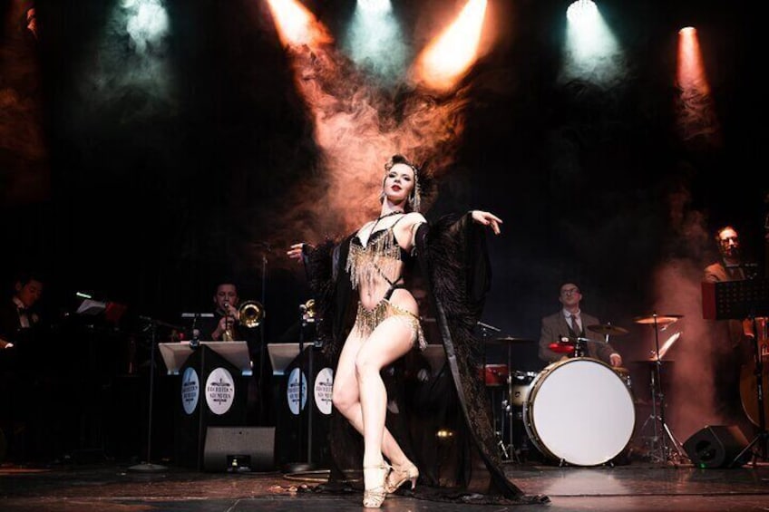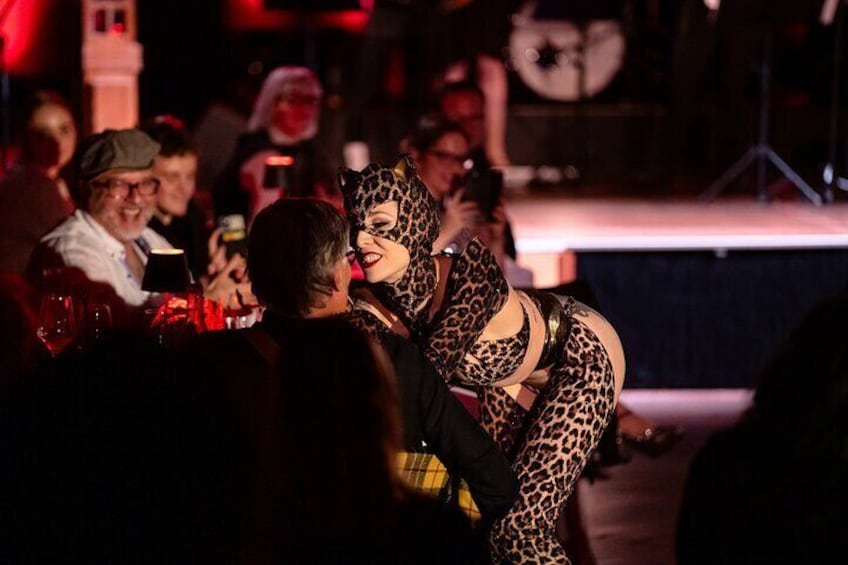 Espectacular cena burlesca con espectáculo