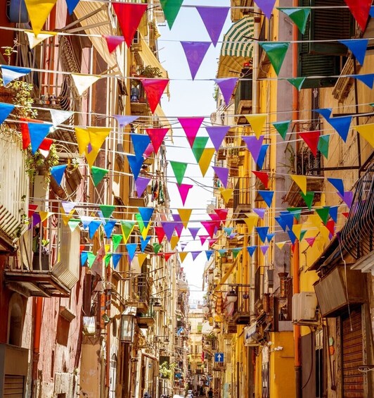 La actividad comienza en la Piazza Plebiscito, en el corazón del casco antiguo, luego cruzaremos la majestuosa Galleria Umberto I y llegaremos a los famosos «Quartieri Spagnoli» o barrios españoles. El ambiente aquí es típico de Nápoles, con sus callejones estrechos con ropa colgada de los balcones, el bullicio de las vespas, los mercados y las conversaciones entre vecinos. Aquí comprenderás cuánto amaban realmente los napolitanos a Maradona.