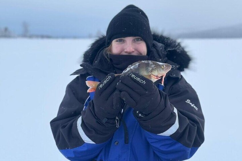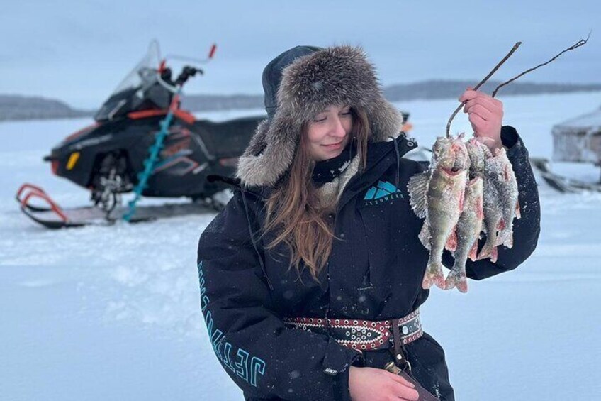 Desde Ivalo: safari de pesca en el hielo hasta el lago Inari, renos y almuerzo