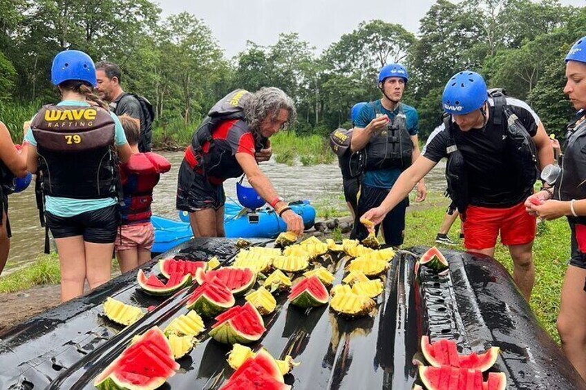 Ponga en marcha sus vacaciones en Costa Rica con rafting en aguas bravas de clase III y IV desde La Fortuna.Costa Rica es conocida por su rafting mundialmente famoso y los rápidos de clase II y IV del río Sarapiquí no le defraudarán.Su excursión de rafting en Costa Rica comienza con un trayecto de 1 hora de recorrido panorámico que serpentea a través de plantaciones de papaya, piña y yuca en la base del majestuoso volcán Arenal.Una vez que llegue al punto de instalación, los hábiles guías expertos de Wave Expedition le informarán sobre el procedimiento de seguridad y normas para prepararse para sus responsabilidades de remo. Una vez que conozca las reglas y dé muestras de que está familiarizado con los comandos, estará listo para empezar su excursión en Costa Rica.El rafting con Wave Expeditions es sin duda uno de los puntos más destacados de su excursión en Costa Rica. Pura Vida.