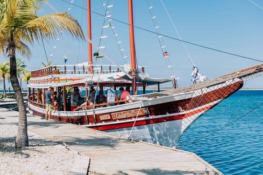 En un chárter con Lady Bellaïs podrás ver una parte de la hermosa costa de Bonaire. Recorriendo el bulevar y atravesando las aguas cristalinas, te estaremos sirviendo diferentes bebidas y snacks que podrás disfrutar en nuestra cubierta superior, bajo cubierta o incluso en las redes en la proa del barco. ¡Asegúrate de traer tu ropa de baño porque nadaremos, bucearemos y usaremos el columpio de cuerda!