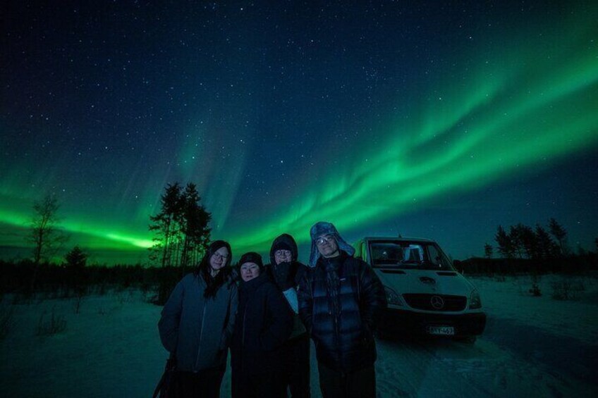 ROVANIEMI Caza de auroras boreales de alcance ilimitado con furgoneta VIP