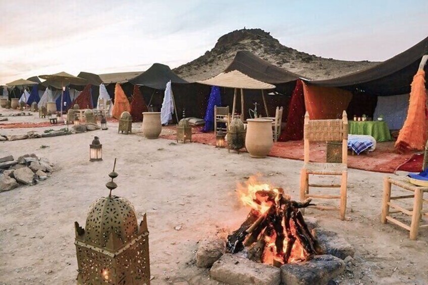 Agafay Escape: Paseo en camello, espectáculo de fuego y cena bajo las estrellas