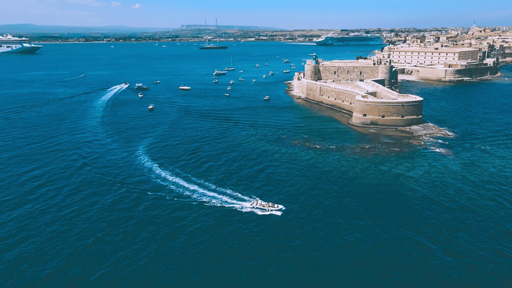 Admire la isla de Ortigia en su totalidad mientras tiene la oportunidad de ver el Castillo de Maniace, el manantial de Arethusa y la ciudad desde el mar. A lo largo de la costa de Siracusa podrás divertirte desentarrando las formas ocultas detrás de las rocas más famosas, adentrarte en cuevas marinas, y observar las variaciones de color dentro de ellas.