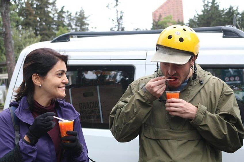 Tour Compartido: Guía de Gran Colombia Tours, bicicleta, casco, asitencia técnica, experiencias gastronómicas y seguro contra todo riesgo.