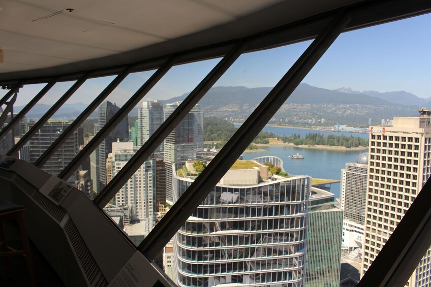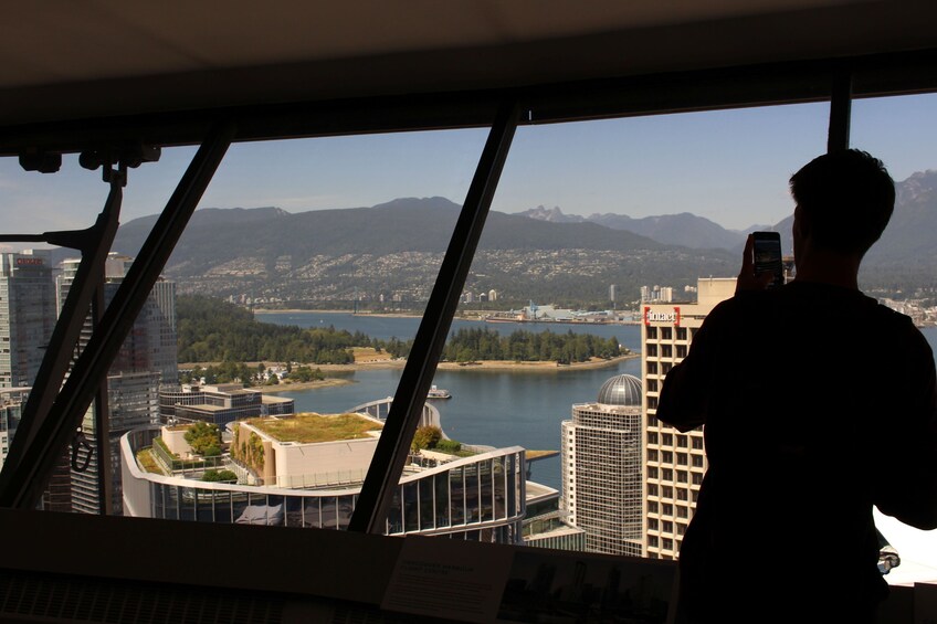 La última parada es el Vancouver Lookut, donde un elevador de vidrio te llevará 170 metros (450 pies) hacia el cielo a la plataforma de observación. Tu guía te dará más información sobre los monumentos locales y la historia de cómo se construyó la ciudad, o también puedes explorar la vista de 360 grados a tu propio ritmo.