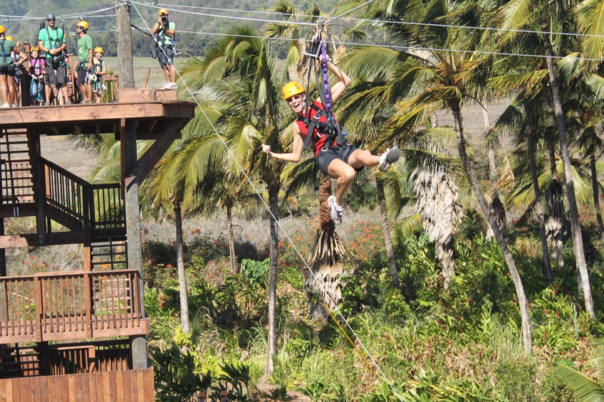 Tirolesa en la plantación tropical de Maui